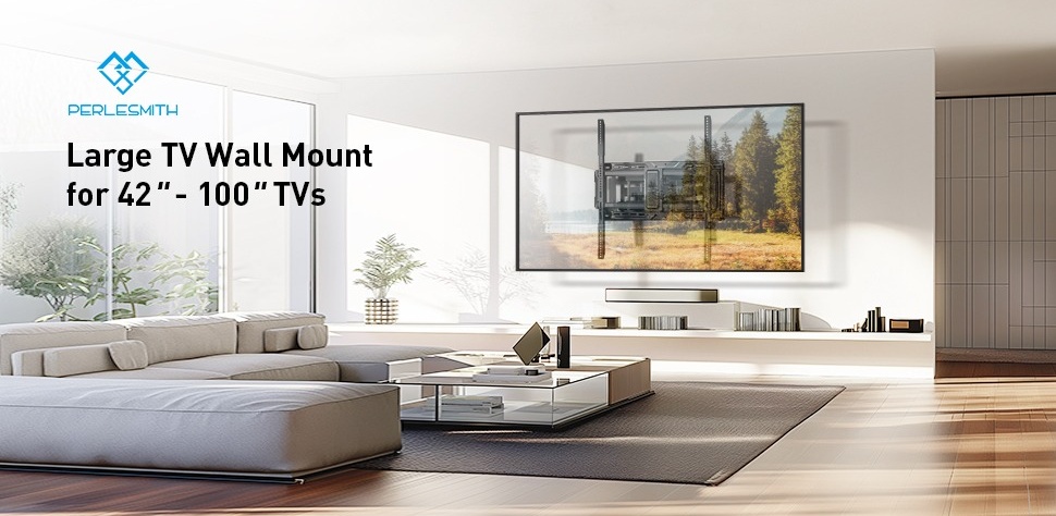 Wide Compatibility: Designed to accommodate screen sizes ranging from 42" to 100" and VESA patterns from 200x100mm to 600x600mm. This PERLESMITH extra-large TV wall mount is versatile enough to adapt to a variety of wall types. From 12", 16 & 24" on center wood stud walls to solid concrete and concrete block surfaces, its comprehensive mounting hardware ensures compatibility across different surfaces.
