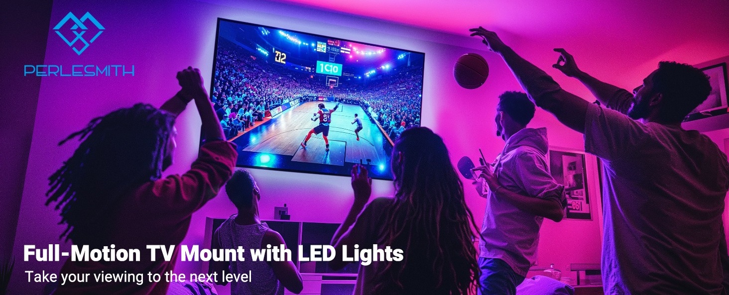 PERLESMITH Full Motion TV Wall Mount for 37-86″ TVs up to 132lbs. Features RGB/LED Lights, Swivel, Tilt, Leveling, Extension, VESA Compatible 200x100-600x400mm, Fits 12&16 On Center Wood Stud Widths