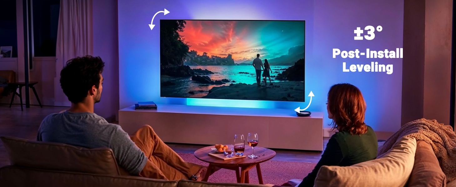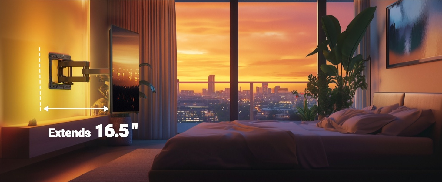 Full Motion Flexibility: Our full motion TV mount offers flexibility with 16.5″ arm extension and +/-45° swivel to position your screen at the perfect viewing angle. You can also retract it back 2.9″ from the wall to save space. Reduce glare with +5°/-15° screen tilt to avoid reflections from light sources.